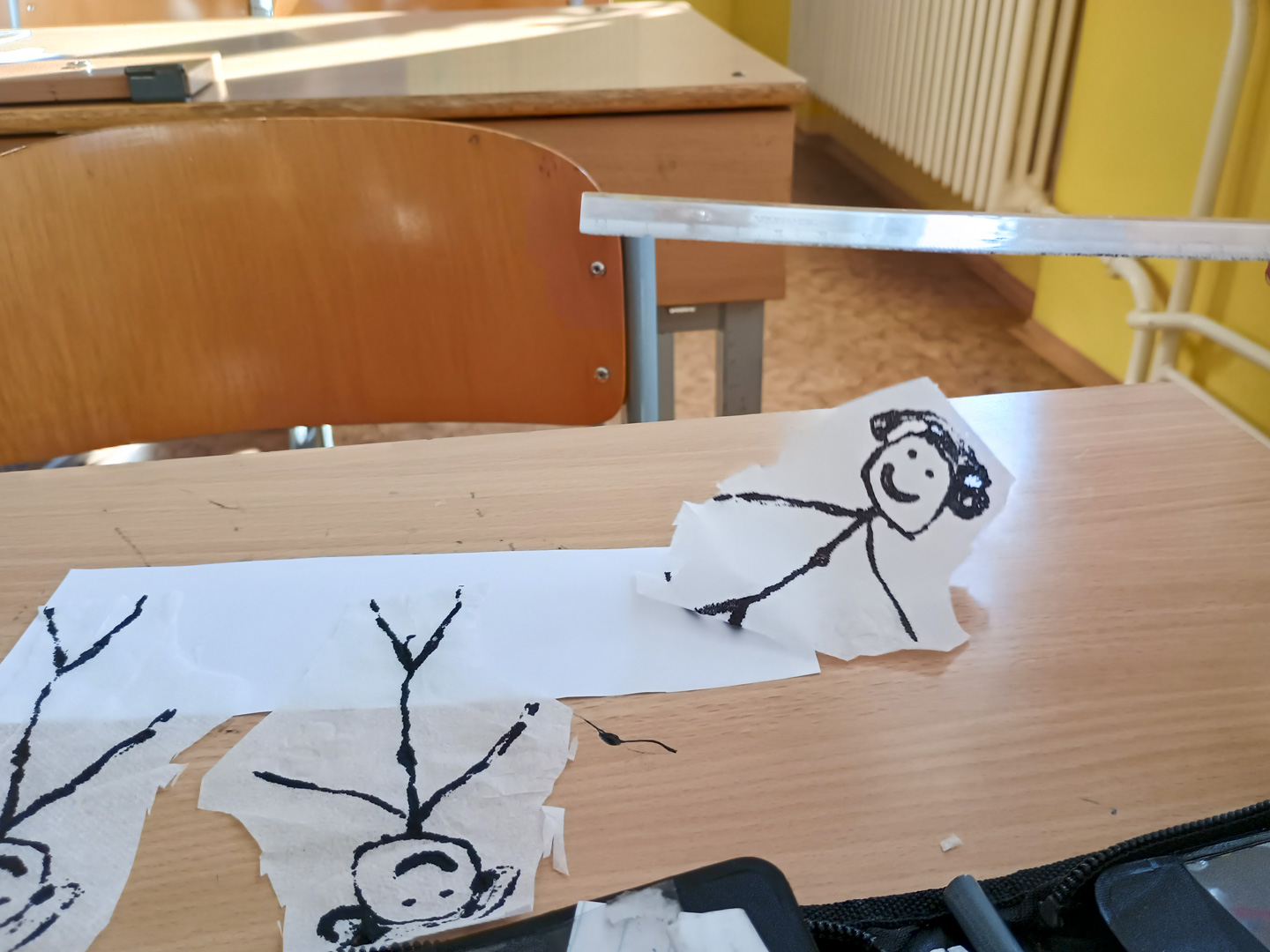- Na kousek toaletního papíru nakreslíme jednoduchého panáčka.
