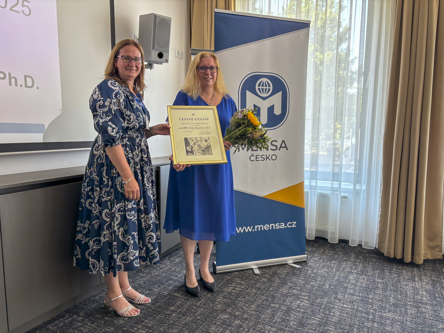 V červnu jsme Čestné uznání Mensy za rok 2025 předali paní profesorce Šárce Pospíšilové, která s námi strávila část podzimního setkání ve Znojmě, odkud si odjela na Pražský hrad převzít z rukou prezidenta Petra Pavla medaili Za zásluhy o stát v oblasti vědy. Šárka Pospíšilová je molekulární bioložka a genetička, prorektorka Masarykovy univerzity, jejíž výzkum významně posunul diagnostiku leukémií a přispívá k poznání genetické informace české populace. Na znojemském setkání se mensané zapojili do výzkumného programu Genom Evropy, který paní profesorka vede, a přispěli trochou své krve do genomu Evropy.