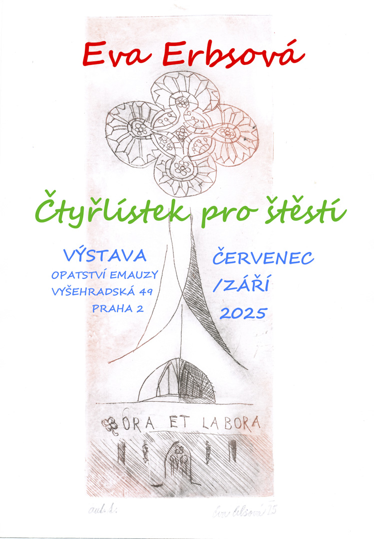 Eva Erbsová představuje v malém sále Emauzského opatství retrospektivu svých prací z období posledních deseti let, zahrnující především malířskou tvorbu, doplněnou také o grafiku a objekty.