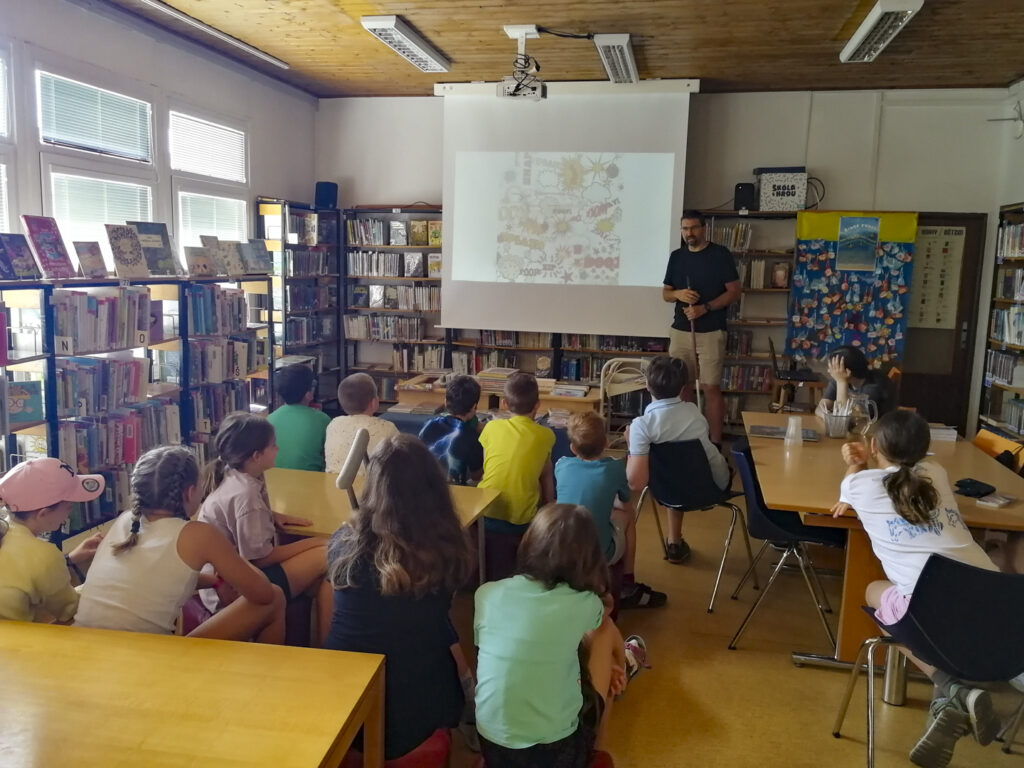 Kromě toho byla pro děti připravena tradiční fotovýzva, šifrovačka, starší děti se v Jihočeské vědecké knihovně dozvěděly, jak se vyznat v médiích, vydaly se na Příběh města do Jihočeského muzea a město si prohlédly v závěru týdne i z vodní hladiny při komentované plavbě lodí. Ty mladší čekal v JVK program Atlas hrdinů a zajímavé pokusy na Zemědělské a technické fakultě JU. I mladší navštívili Jihočeské muzeum, které prohlédli úplně celé. Hostem tábora byla Klára Egerová, která si připravila program o geneticky modifikovaných organismech. Kromě toho si děti zahrály oblíbené deskovky, procvičily angličtinu a nezapomněli jsme ani na sportovní aktivity, pro které máme ideální podmínky v prostorách Fight clubu, kde má tábor své zázemí.