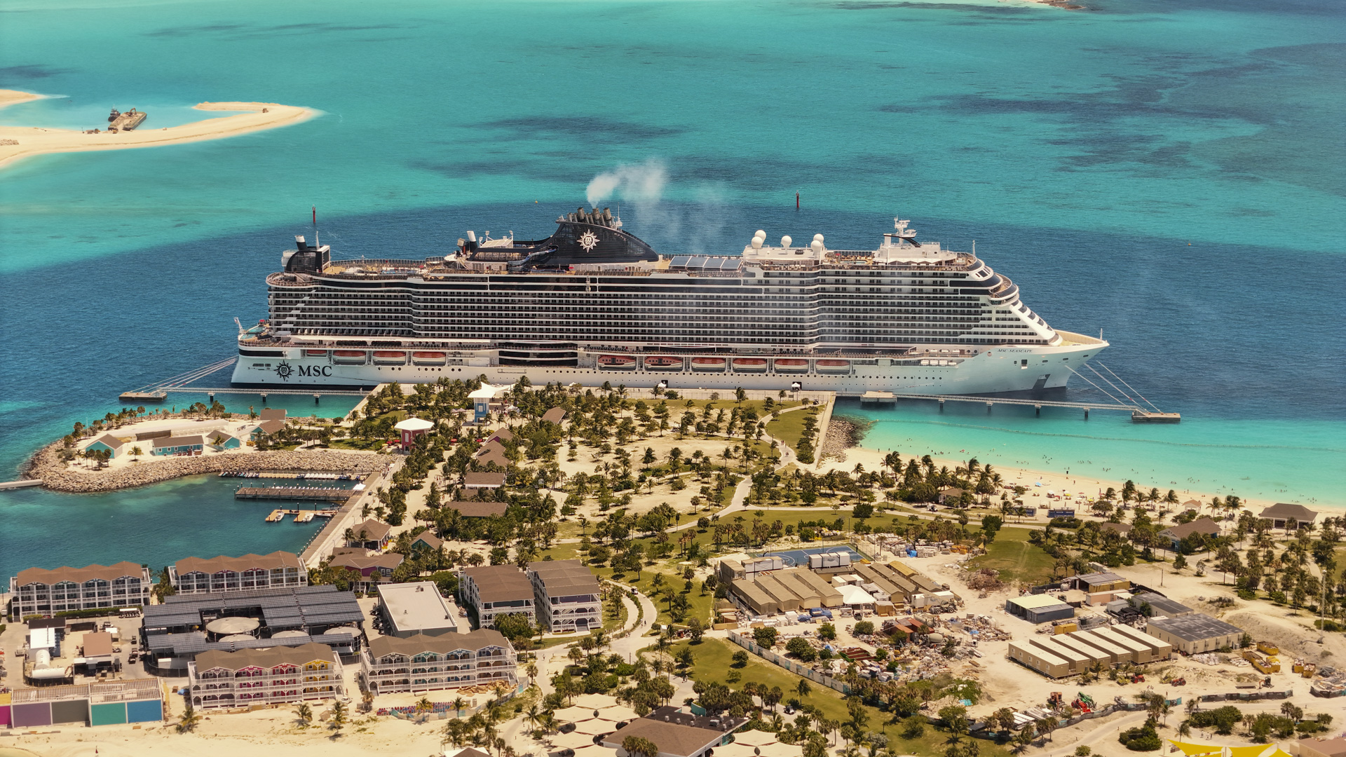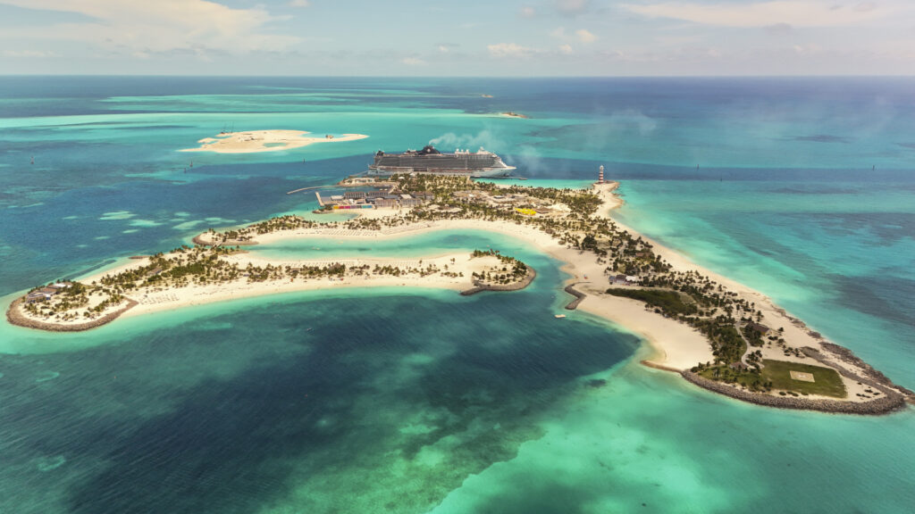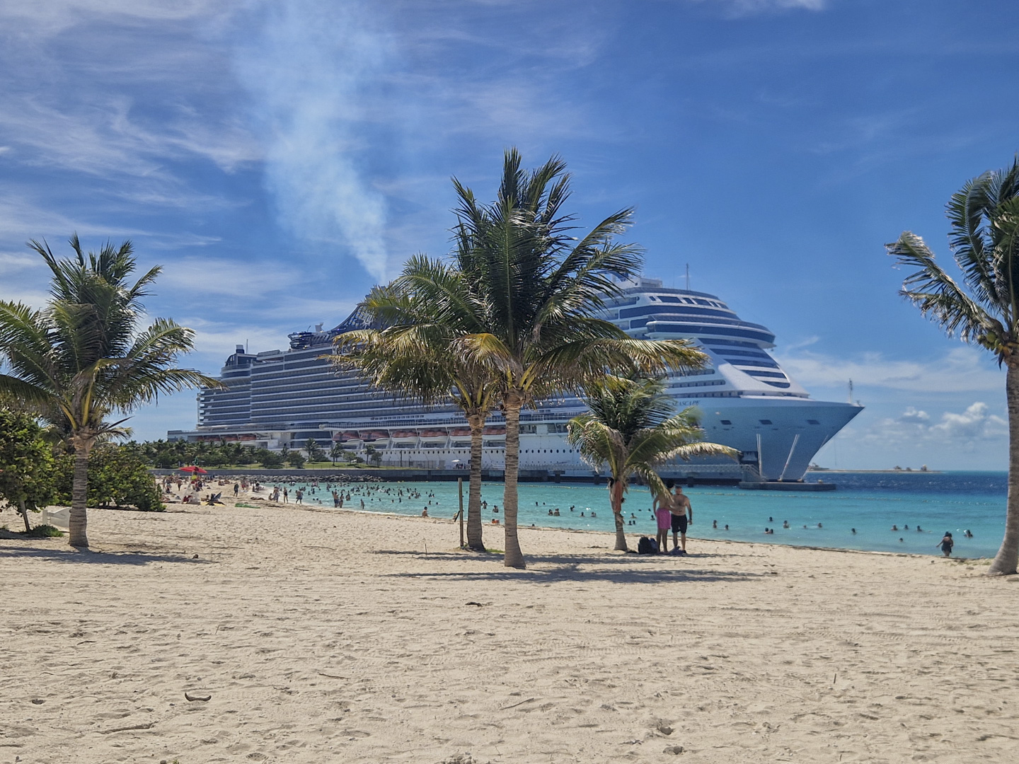 Druhý den ráno (pondělí) jsme dopluli na jeden z bahamských ostrovů jménem Ocean Cay, patřící přímo lodní společnosti MSC. Tento umělý ostrov s rozlohou asi 40 hektarů byl původně určen pro průmyslovou těžbu písku na Floridu a společnost MSC ho zakoupila v roce 2015. Poté ho nechala zrekultivovat, bylo obnoveno přírodní prostředí a vysázeno 75 000 původních rostlin.1 Od roku 2019 slouží jako zastávka výletních lodí, i my jsme na něm strávili příjemný den koupáním a sluněním. Na nejzazším cípu ostrova bylo dokonce možné pozorovat leguány.